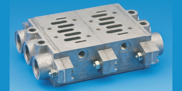 Blok płyt przyłączeniowych służy do montażu zaworów rozdzielających 5/2 i 5/3 sterowanych elektromagnetycznie, mechanicznie i pneumatycznie. Posiada on wspólne przyłącze zasilające P oraz odpowietrzenia EA, EB. Blok stosowany jest w urządzeniach o dużej liczbie zaworów rozdzielających w celu ograniczenia ilości i długości przewodów połączeniowych.