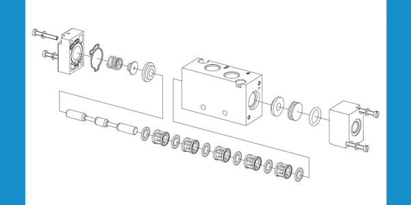 CZĘŚCI ZAMIENNE I KOMPLETY NAPRAWCZE zaworów rozdzielających 3/2 , 5/2 – G1/8-G1/4, sterowanych pneumatycznie, sterowanych pneumatycznie z powrotem ciśnieniem i sprężyną. Seria ZMG