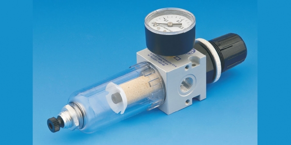Zespół filtrująco-redukcyjny służy do usuwania z czynnika roboczego zanieczyszczeń stałych i ciekłych oraz do nastawiania i utrzymywania stałego ciśnienia czynnika roboczego w pneumatycznych układach napędowych i sterujących, niezależnie od zmiany ciśnienia w sieci zasilającej, powyżej ciśnienia zredukowanego oraz zmiany objętościowego natężenia ciśnienia.