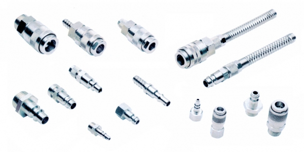Szybkozłączki i króćce szczególnie nadają siędo podłączania narzędzi pneumatycznych, oraz do stosowania w warsztatach samochodowych.