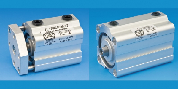 Pneumatyczne siłowniki o krótkim skoku, stosowane w układach pneumatycznych jako elementy wykonawcze. Przeznaczone są do specyficznych zastosowań, zwłaszcza tam, gdzie jest ograniczone miejsce pod ich zabudowę. Posiadają importowane uszczelnienia poliuretanowe o najwyższej odporności na ścieranie, które umożliwiają pracę w warunkach bezsmarowych, przy zasilaniu suchym, oczyszczonym powietrzem, przy zachowaniu wysokiej trwałości i wytrzymałości. W siłownikach od średnicy D32 zastosowano najnowszy typ tłoka PNEUKO, który posiada amortyzator z tworzywa zabezpieczający przed uderzeniem w pokrywy oraz zintegrowany magnes. Pozwala to na stosowanie czujników, położenia (tzw. BSPT - Bezdotykowa Sygnalizacja Położenia Tłoka).